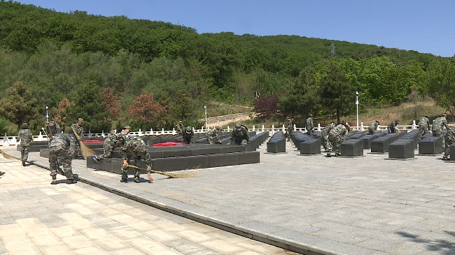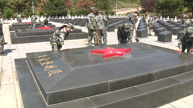 民兵代表仔细清扫墓碑前的落叶、灰尘、蜘蛛网,铲除杂草,认真打扫周围卫生,将陵园打扫得干干净净,用实际行动表达对英雄的缅怀之情。全体民兵在革命烈士墓碑前庄严肃立宣誓,并默哀一分钟,深切悼念为革命事业抛头颅洒热血的革命烈士。