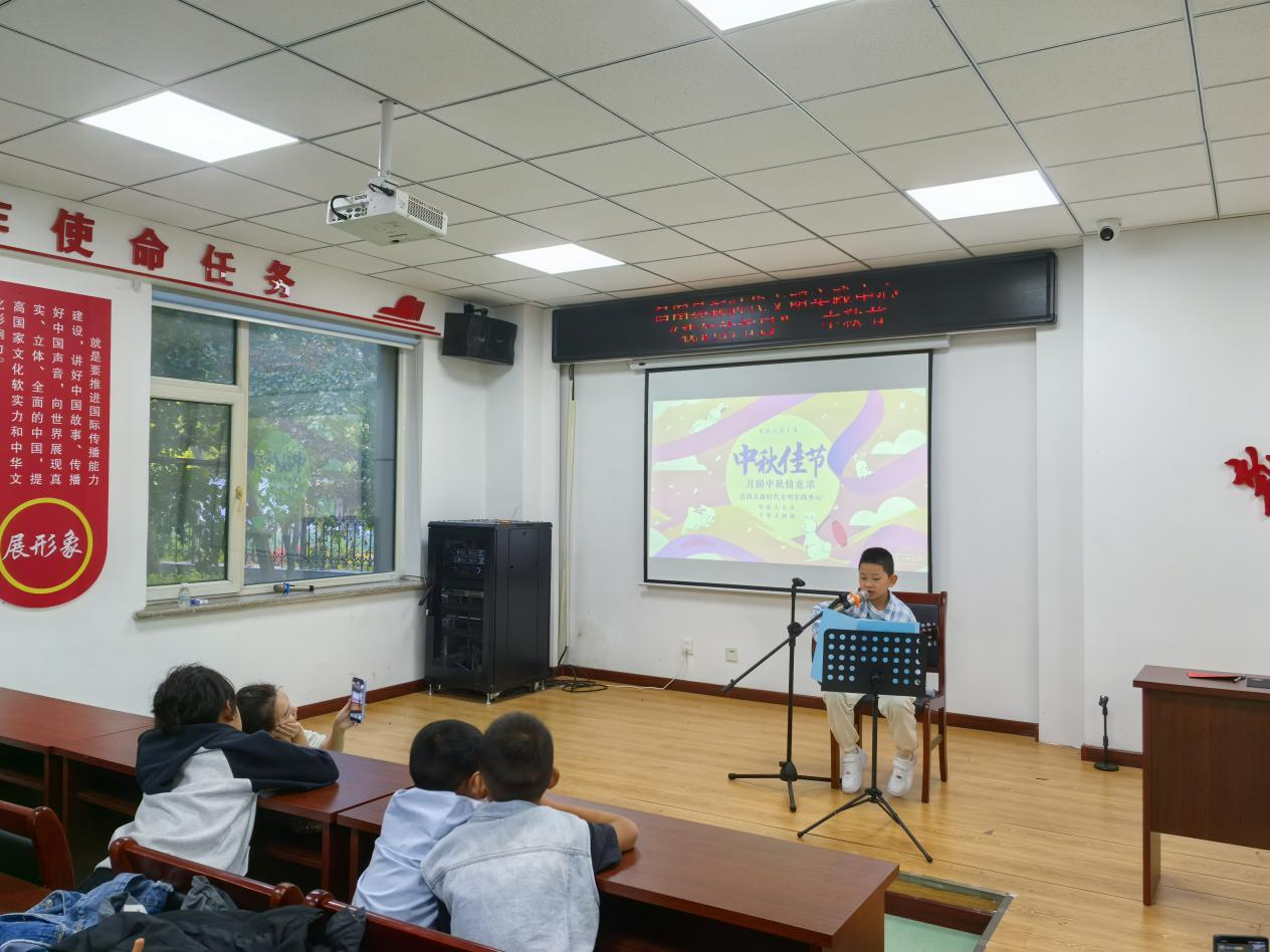 才艺展示环节后,实践中心的志愿者通过有趣的动画短片,为大家讲解了中秋节的悠久历史和丰富文化内涵。在“中秋知多少”有奖问答环节,大家争先恐后地回答着“中秋节又称什么节?”“月饼最初是用来做什么的?”等相关知识,大家还一起参与了中秋主题的图画猜成语有奖竞猜小游戏,不仅收获了精美的小礼品也收获了知识。