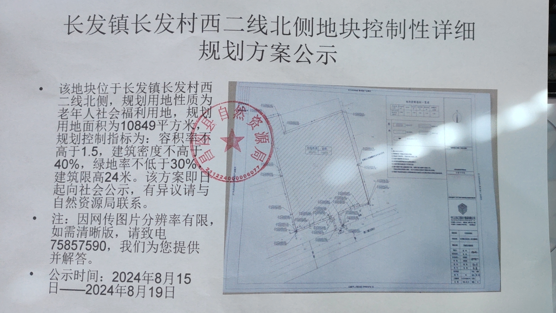 长发镇长发村西二线北侧地块控制性详细规划方案公示